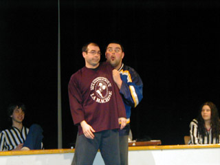 Université de Moncton vs. Ligue d'Improvisation du Madawaska (LIMA). Bass joue avec l'ancien arbitre de la Licum (pré-Michel Albert, imaginez vous donc), Stéphane Bourgoin. |