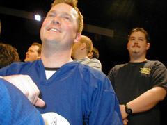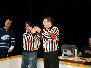 Un retour à l'arène: Le légendaire Stéphane Raymond arrive avec un sac plein de punitions. (Son record: 53 punitions dans un match... mais pas celui-ci.) |