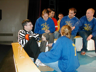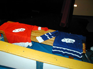 Premier match: La LIMA et la Licum. Emmanuelle Robinson semble avertir Boum "Capitaine Rudesse" Morneault qu'elle ne se laissera pas manger la laine sur le dos. |