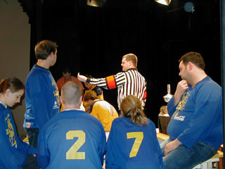 Pas mal de joueurs ont la chance d'arbitrer autant que jouer, comme Yves Doucet de la LIA qui ici officialisait le match Licum-Liloma (UdeM vs. UMCE). |