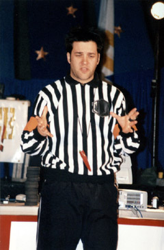 Le seul, l'unique, Rockabilly Referee, et ses adjoints Christian Essiambre et Eric Lavoie. |