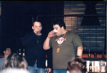 Important élément du S.I.M. : Essayer de caler un bière plus vite que Bass. Dominic Lapointe (Québec) a échoué. |