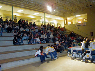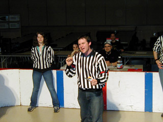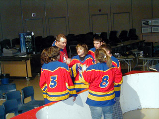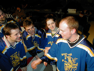 Une tradition: Un match avec l'équipe-étoile de l'UdeM. Ici, Sylvain raconte ses impressions de Brokeback Mountain au lieu de faire un caucus. On est bad! |