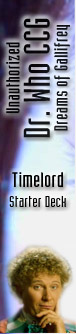 This randomized Starter Deck starring the 6th Doctor and the Timelords contains your first cards from the Dreams of Gallifrey expansion. In addition to 50 randomzied cards (33 commons, 15 uncommons and 2 rares), the pack also contains 10 cards exclusive to this starter deck.