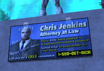 People have said that I look like Vin Deisel, Marlon Brando, Charlie Sheen and even that black buy from the TV show Hang Time. However I feel that the person who ressembles me is none other than attorney Chris Jenkins. I can't tell you how many times he got me out of super hero lawsuits. You save a girl from a burning building and she gets upset because I didn't give her time to change. Well sorry...not! |